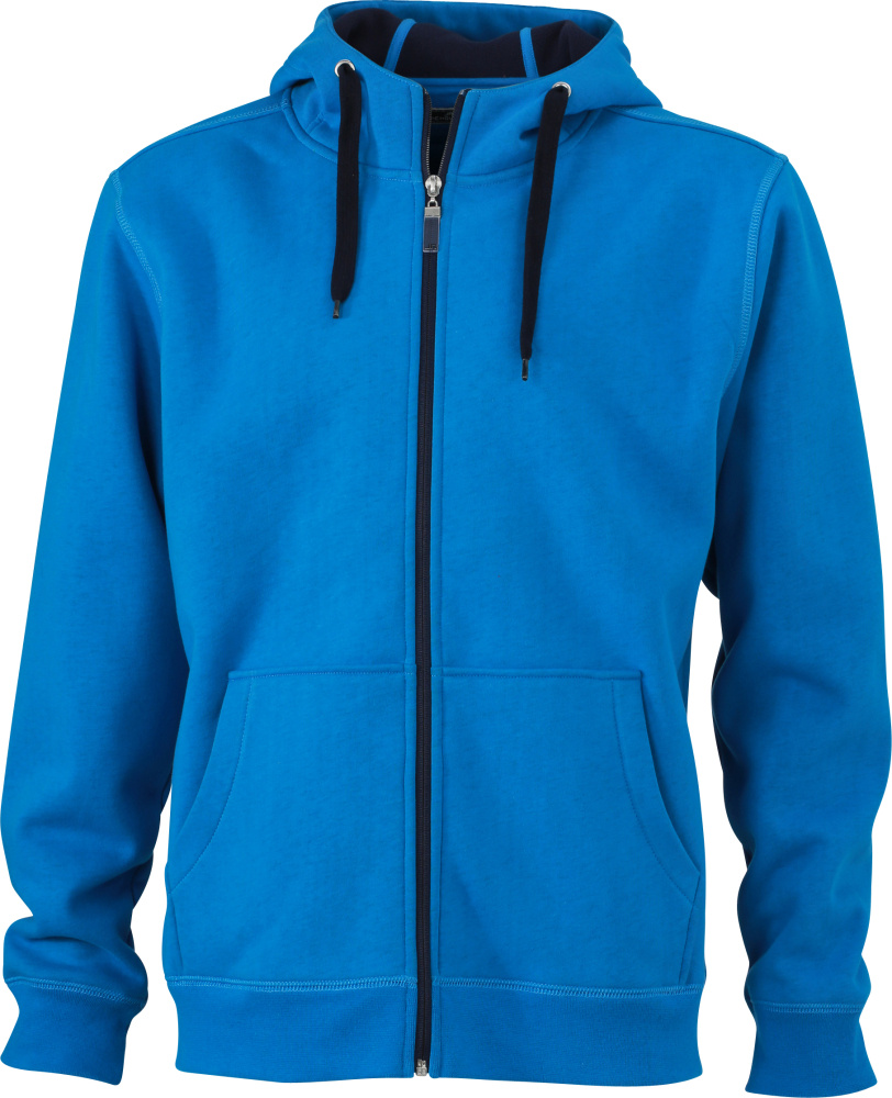 - Sportive Bonding-Herrenjacke mit Kapuze - Kapuze mit Kinnschutz - Full-Zip - Kordel und Innenseite in Kontrastfarbe - Kängurutasche - Flatlocknähte - Elastische Bündchen an Arm- und Bundabschluss - Angesetzte Ärmel - Außen: Single-Jersey-Baumwolle, innen: Microfleece-Polyester - Dieses Produkt können Sie besticken und bedrucken lassen.