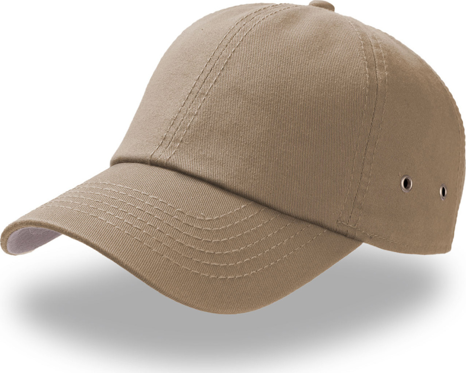 underpeak in contrasting color, metal eyelets, unstructured front panel, self fabric strap with metal buckle. This product can be embroidered.