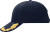 Extravagantes Cap mit Eichenlaub-Stickerei in Lurex auf dem Schild, Metallschnalle mit Druckknopf und gestickter Öse, 6 gestickte Luftlöcher, Frontpanels laminiert, gefüttertes Satinschweißband. This product can be embroidered.