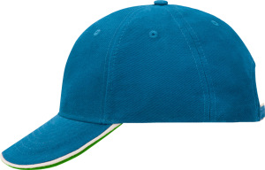 - Heavy brushed cotton - Clip buckle in mat silver with contrasting piping and embroidered eyelet - 6 embroidered ventilation holes - On the peak 6 decorative stitching lines - Contrasting lower peak - Laminated front panels - Padded satin sweat band - This product can be embroidered.