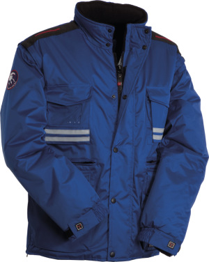 Herren-Jacke, abtrennbare Ärmel, verdeckter 8 mm Reißverschluss aus Kunststoff mit Metallschieber und Kunststoffknöpfen, vorgeformte, abtrennbare oder im Kragen einrollbare Kapuze, regulierbare Ärmelbündchen, graue Reflexstreifen vorne und hinten, vorgeformte Ellbogen und Seitenschlitz mit Ziehharmonikafalte und Reißverschluss, 9 Außentaschen, davon 2 mit LOCK SYSTEM, 2 mit Reißverschluss und verstärkter Innenseite, 1 mit nach innen wendbarem Ausweisfach. Innenseite: wattiert, Kragen, Rücken- und Nierenschutz aus Mikrofleece, atmungsaktive Einsätze unter den Armen, Kordelzug in der Taille und Innenreißverschluss zum einfacheren Veredeln mit Druck und Stick. This product can be embroidered.