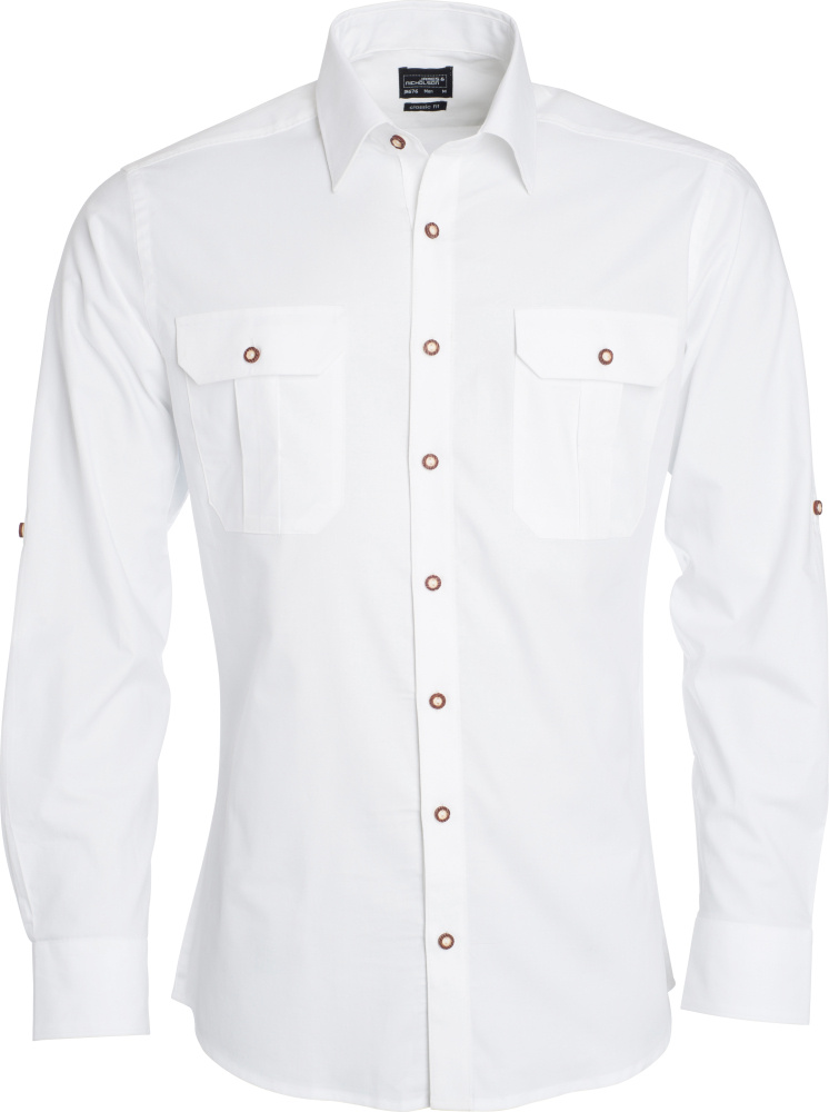 lightly waisted cut, buttons in traditional costume look made of imitation horn, 2 breast pockets, roll-up sleeves with loop and button, cotton twill with easy-care finish. This product can be printed and embroidered too.