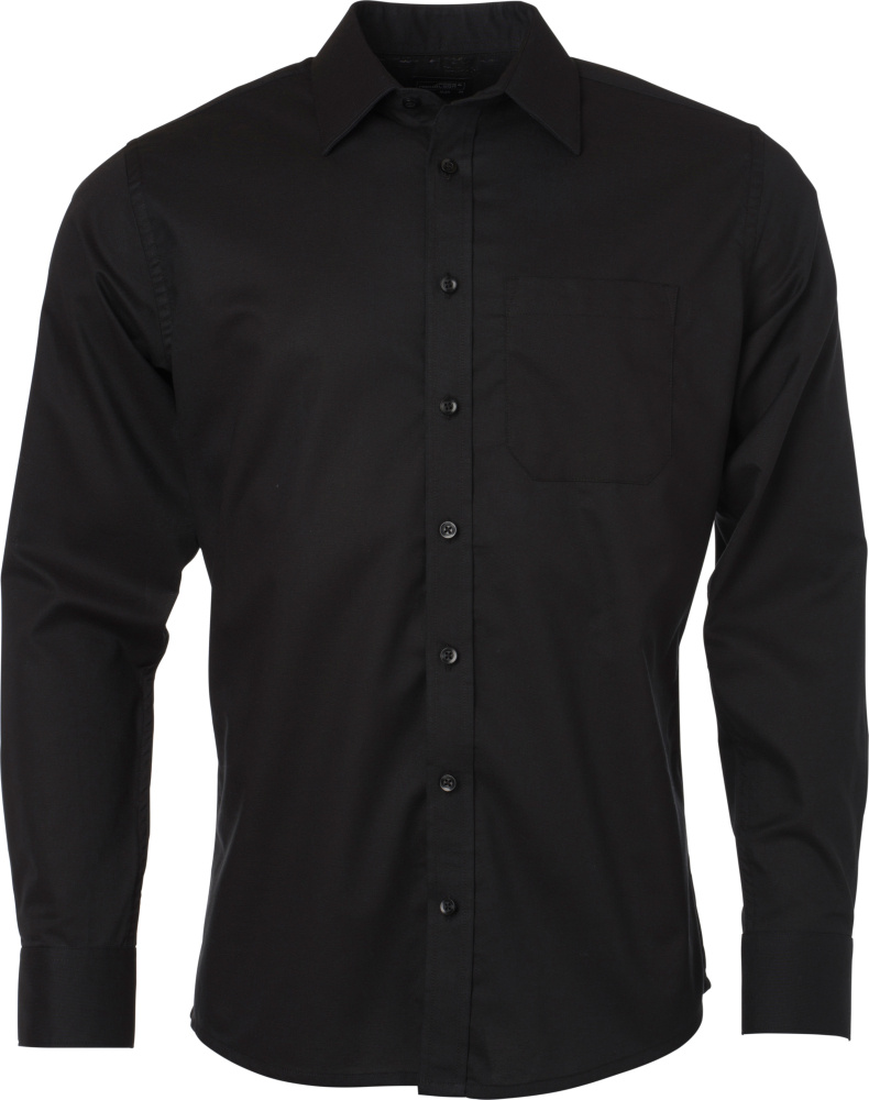 lightly waisted, breast pocket 12x14cm, rounded hem, pleats on rear yoke, easy-care finish. This product can be printed and embroidered too.