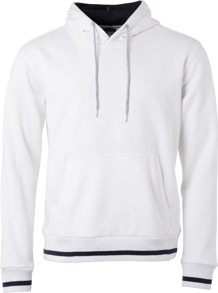 2-layer hood inside in contrasting colour, contrasting stripes on waistband and sleeve cuffs, knitted cuffs with elastane, kangaroo pocket, roughened inside. This product can be printed and embroidered too.