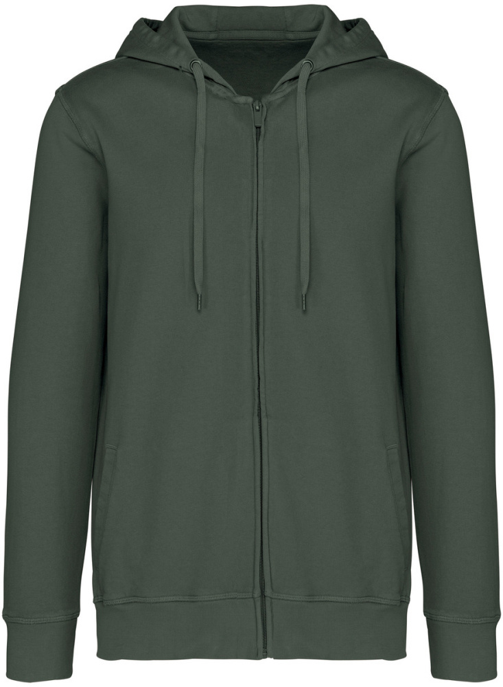 100 % organic cotton. Made in Portugal. Ringspun combed cotton. Straight fit. Enzyme washed. French Terry inner. 1/2 circle in the back. Recycled nylon rib finish on zip. Two front pockets. 3-panel hood lined with main material. Tone-on-tone flat drawstring with recycled metal tips and eyelets. Cover stitch on the neckline, armholes, cuffs and bottom hem. 1 x 1 rib cuffs, neckline and bottom hem. Inner taped neck with herringbone. Garment dyed after assembly: colours may vary slightly from item to item. The colour may rub off on contact with light surfaces. Made in Portugal. Made from more eco-friendly and more ethical organic cotton. No label: 100% customisable for your project. This product can be printed and embroidered too.