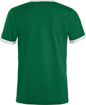 Zweifarbiges Unisex T-Shirt mit Kontrastfarbe an den Abschlüssen des Kragens und der Ärmel. Durch Elasthan hat es einen elastischen Halsausschnitt. This product can be printed and embroidered too.