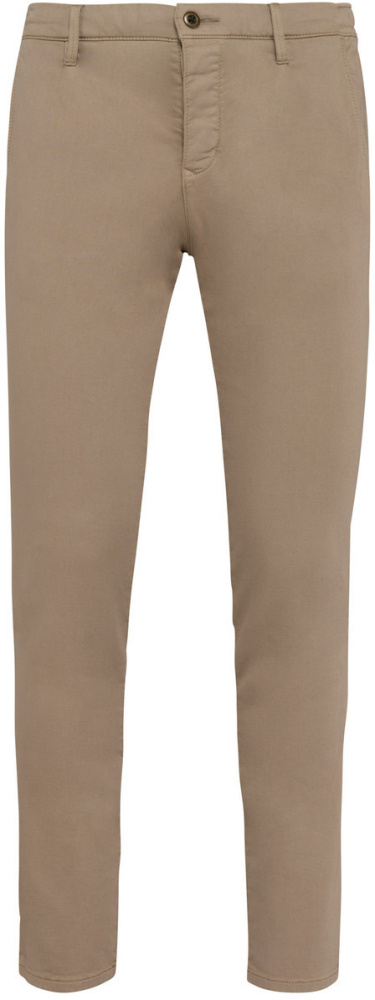 74 % organic cotton / 25 % conventional cotton / 1 % elastane. Stretch fabric. Garment woven with French Terry effect inner. Peach-skin feel finish. Placket fly, metal buttons. Two side pockets. Semi-elasticated waistband at the sides with loops. Two piped pockets on the back with metal buttons and reinforced corners. Two flat inner drawstrings. Garment dyed as a whole after assembly: colours may vary between products. The colour may rub off on contact with light surfaces or clothing. French Terry inner makes it comfortable to wear. Modern fit. No label: 100% customisable for your project. This product can be printed and embroidered too.