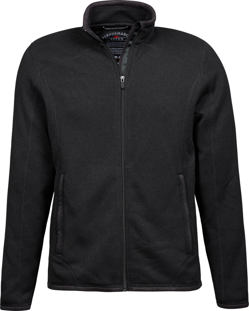 Figurbetonter Schnitt, Melange-Strickoptik außen, weiches Fleece innen, 2 seitliche Taschen mit Reißverschluss, Stehkragen, Flatlocknähte, Säume mit Trikotstoff eingefasst. A termék hímezhető.